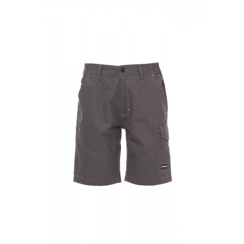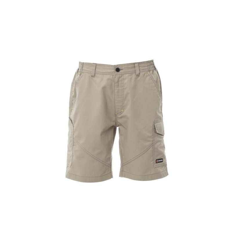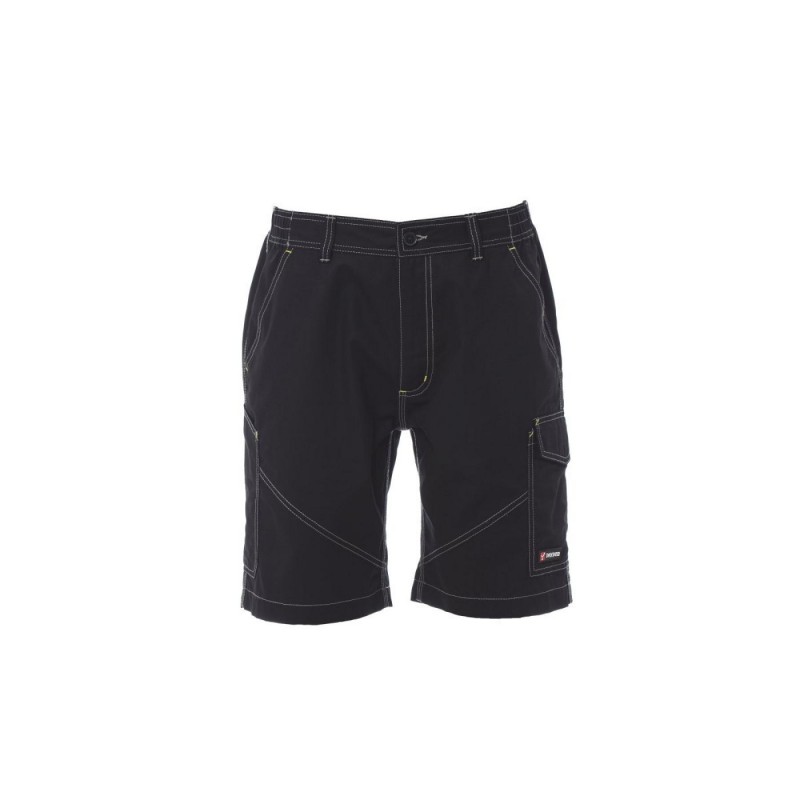 Bermuda con elásticos laterales y trebillas en la cintura, cierre con cremallera y boton de plástico. Dos bolsillos delanteros de corte clásico, bolsillo lateral con LOCK SYSTEM, soporte para metro. Dos bolsillos traseros, uno con tapeta y velcro, y otro abierto. Aplicaciones y pespuntes de contraste, bandas refelctantes en e bolsillo trasero, costura triple
